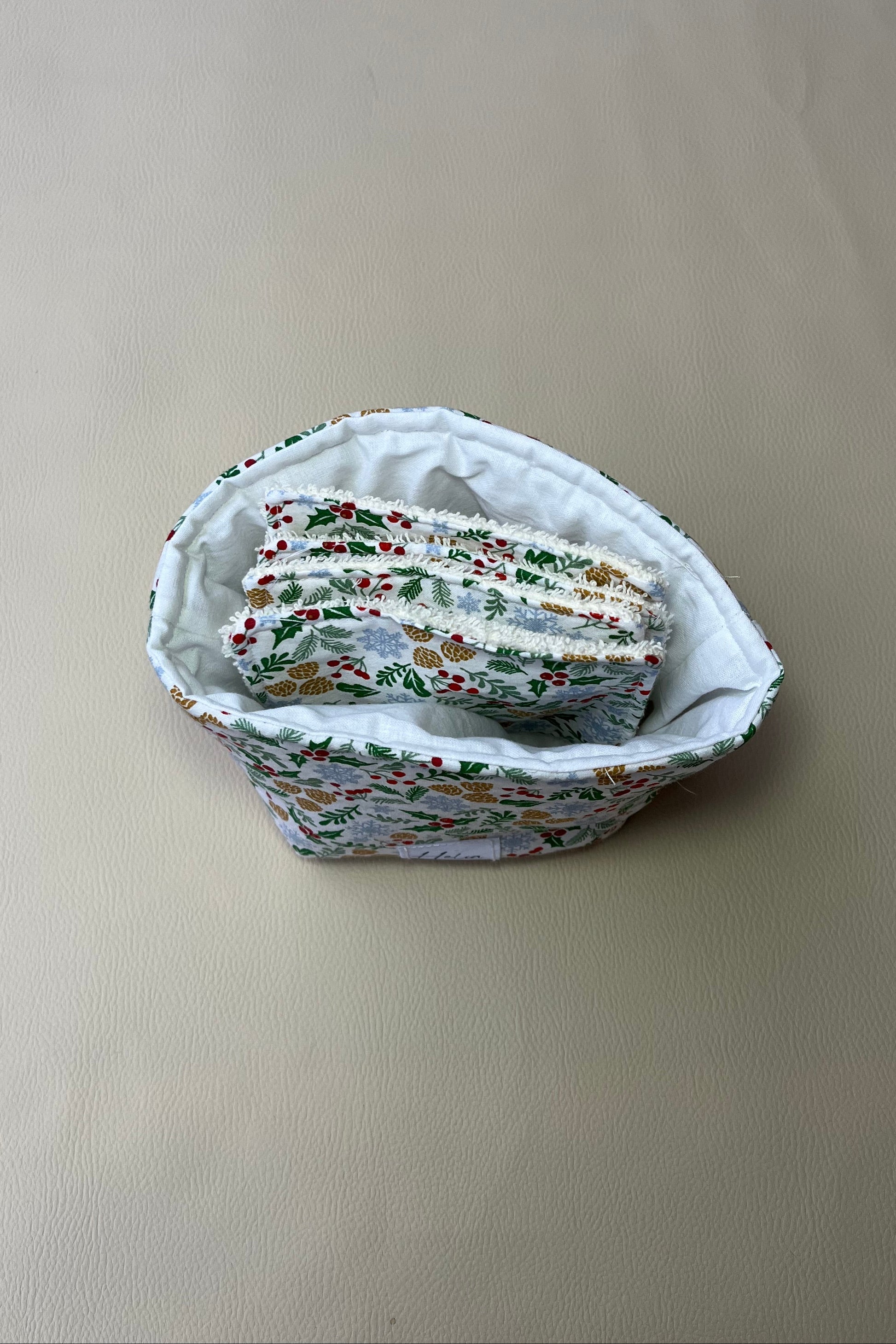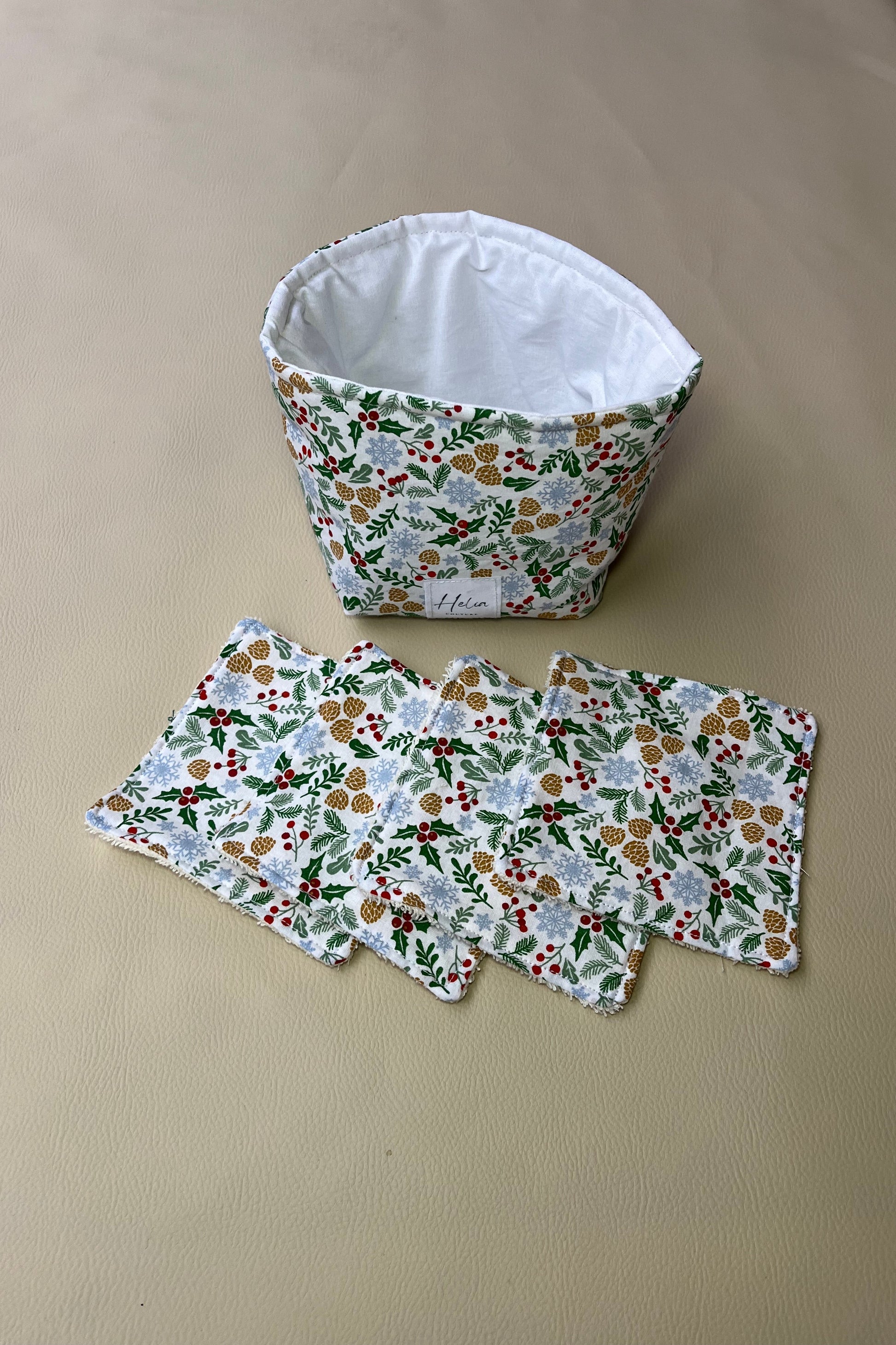 Panière et 7 Cotons Réutilisables "Cocon de Noël"